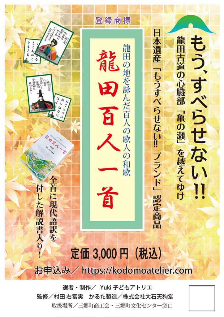 日本遺産「もうすべらせない ブランド」認定商品 龍田の地を詠んだ百人の歌人の和歌「龍田百人一首」 定価 3,000 円(税込) 12月頃から発売予定です!…