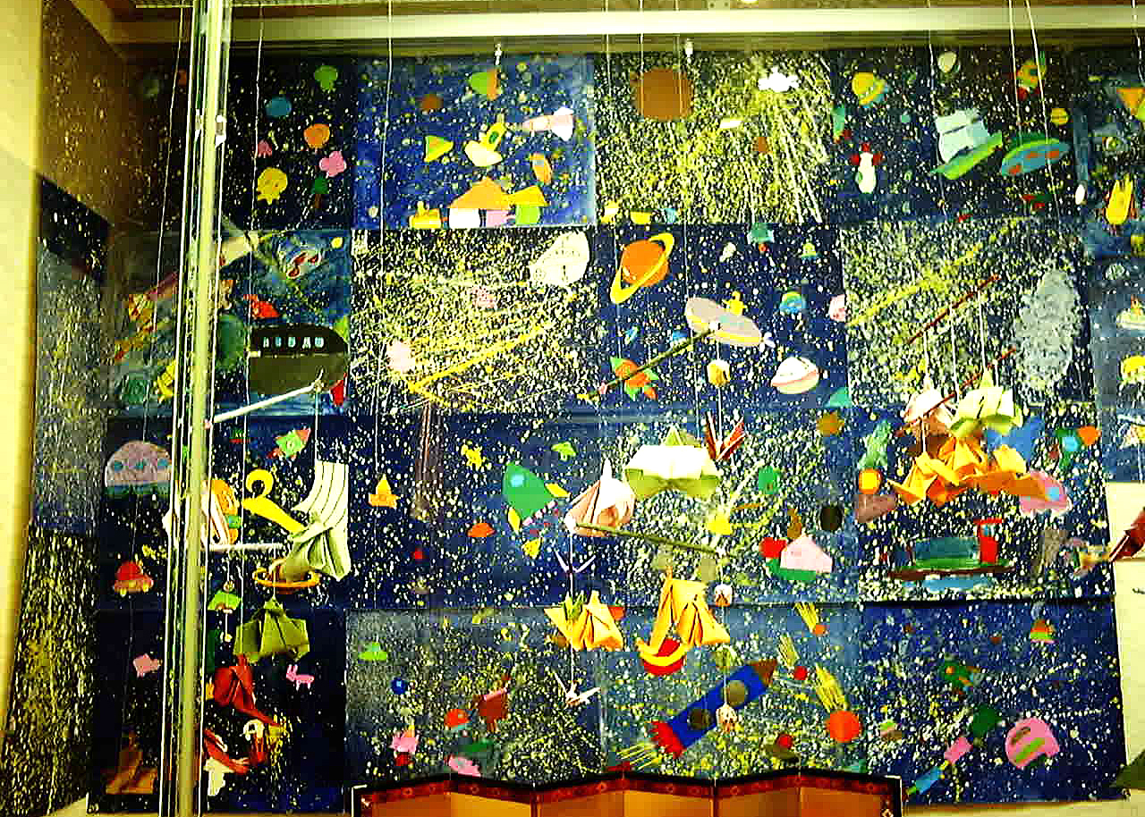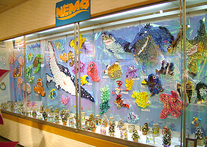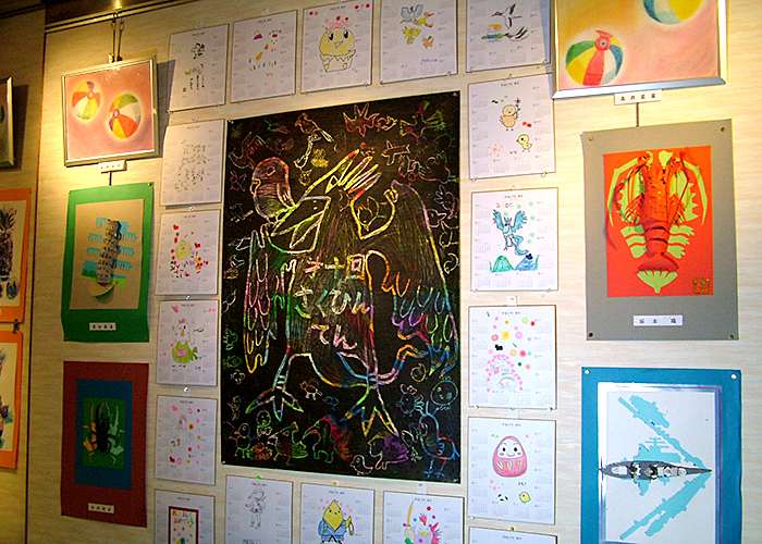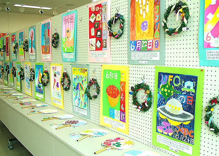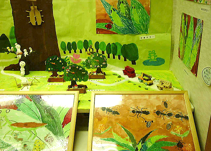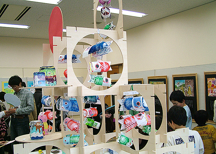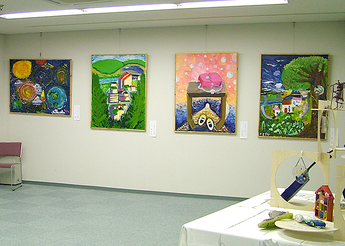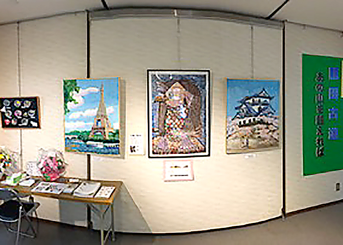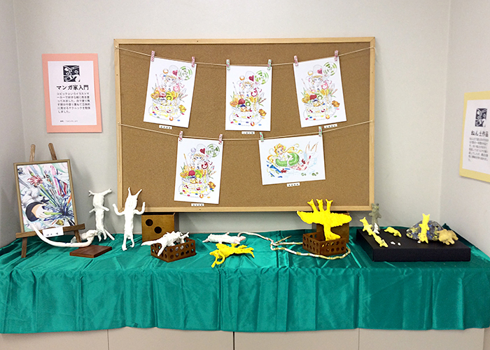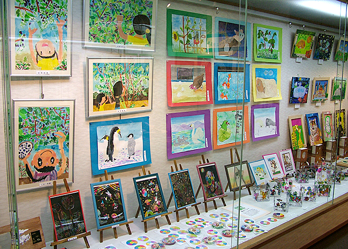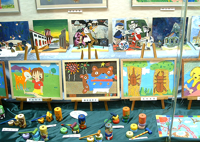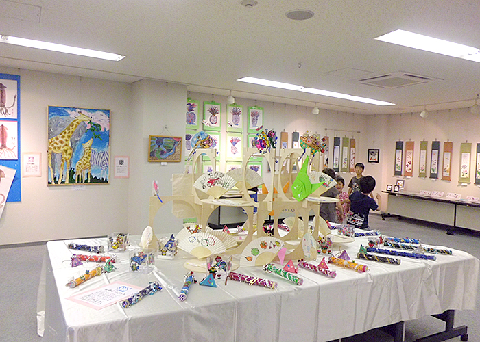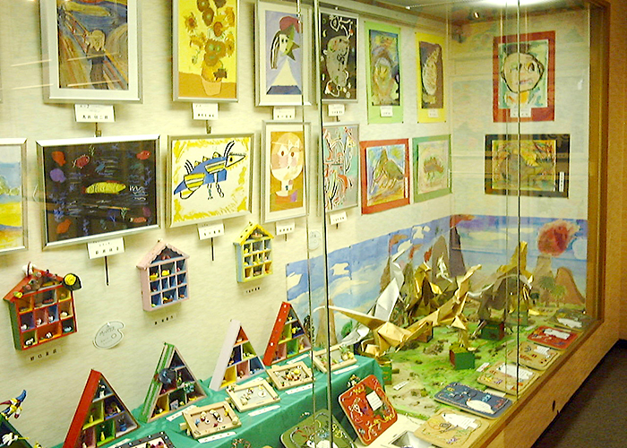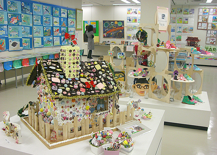 約1年半ごとに作品展を開催しています。個人の作品や、アートと他の教科とコラボして作った合同作品等200点以上の作品を出展し、来場者の方に喜んでいただいています。最近はコロナの関係で自由に触っていただける展示が出来なくなっています。