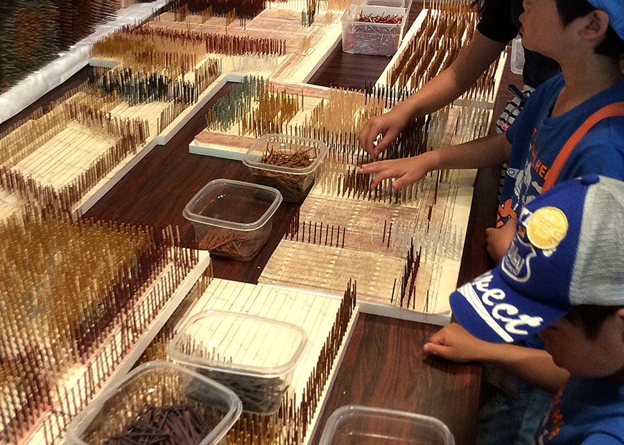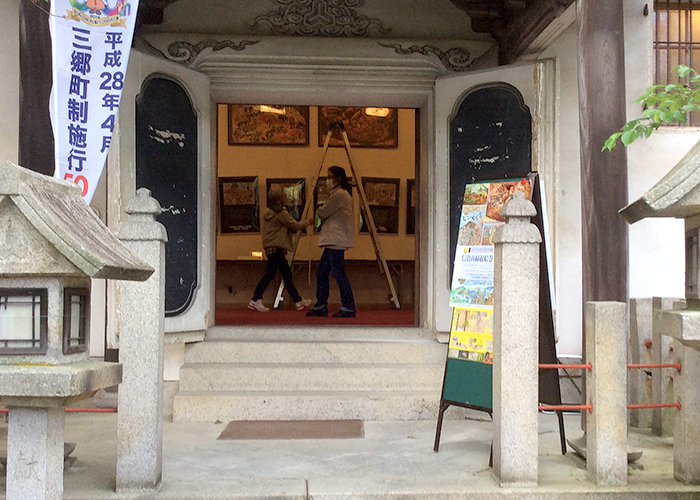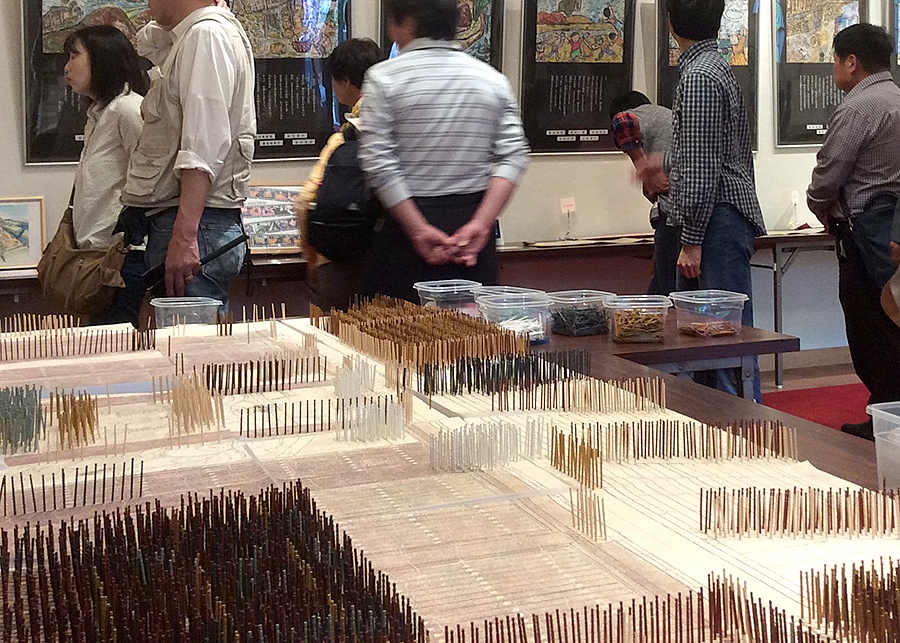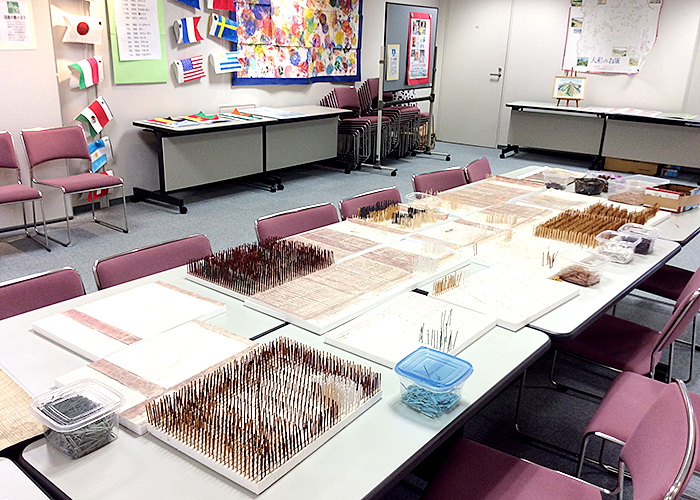 16色に彩色したつまようじ28,800本を使用し、尼公の巻「東大寺異時同図」を制作。平成28年4月30日から5月5日まで、信貴山朝護孫子寺飛び倉館にて「信貴山縁起絵巻ロウ画展」を開催し、約3500名の方のご来場があり、多くの方にご参加いただきました。